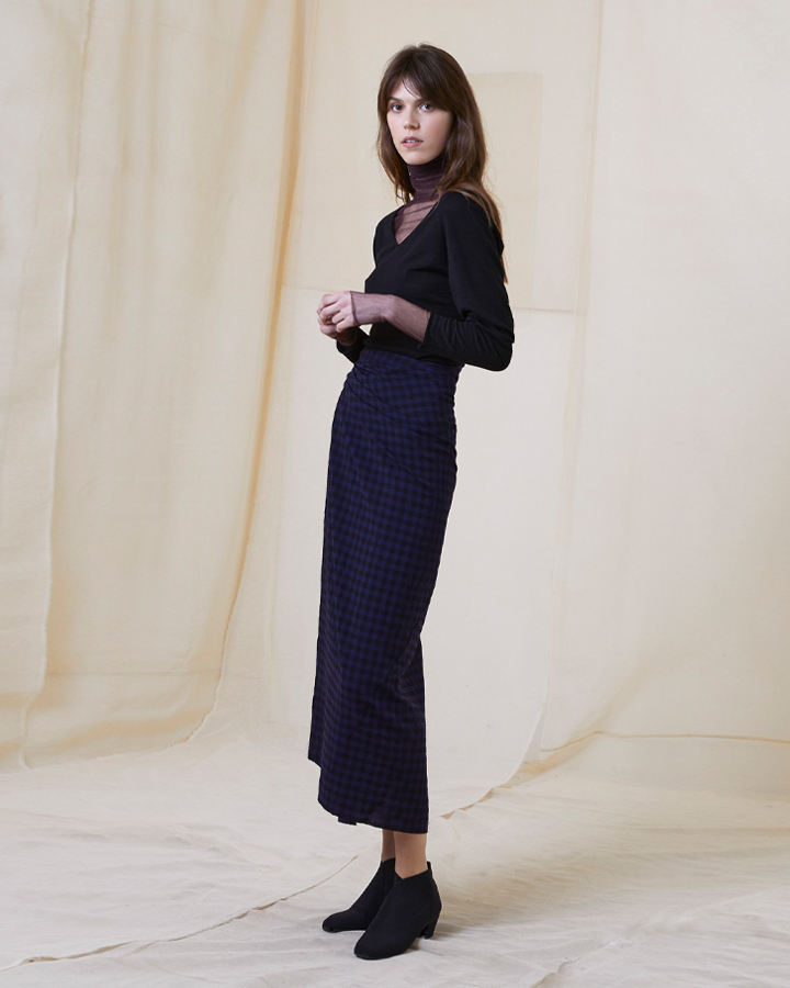 Cortana 格紋裹身羊毛半裙