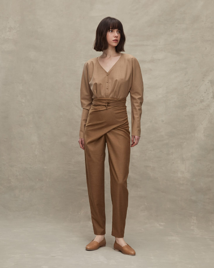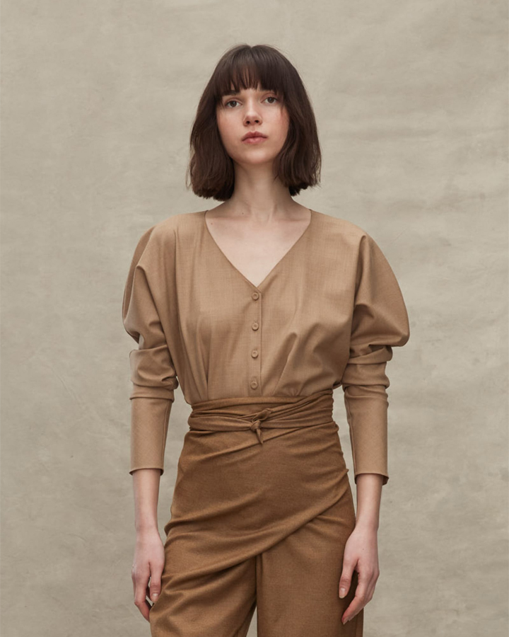 Cortana 彈性羊毛泡袖V領上衣