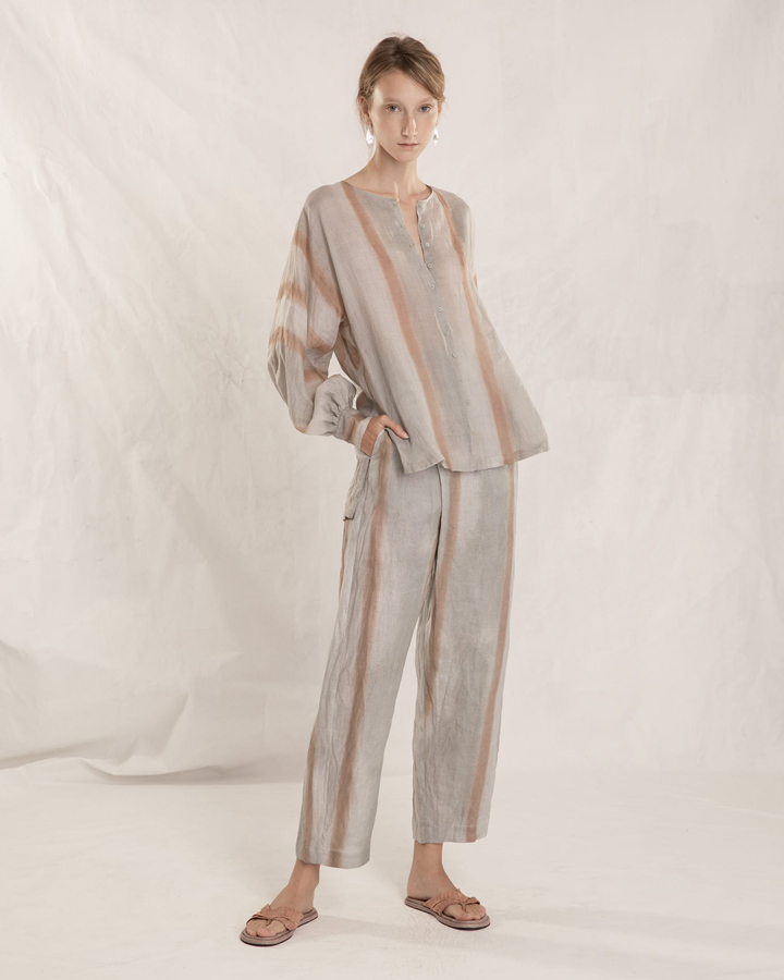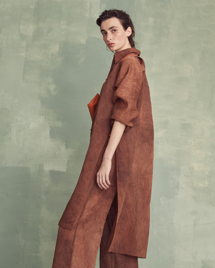 Cortana 亞麻棉混紡不均染長版襯衫