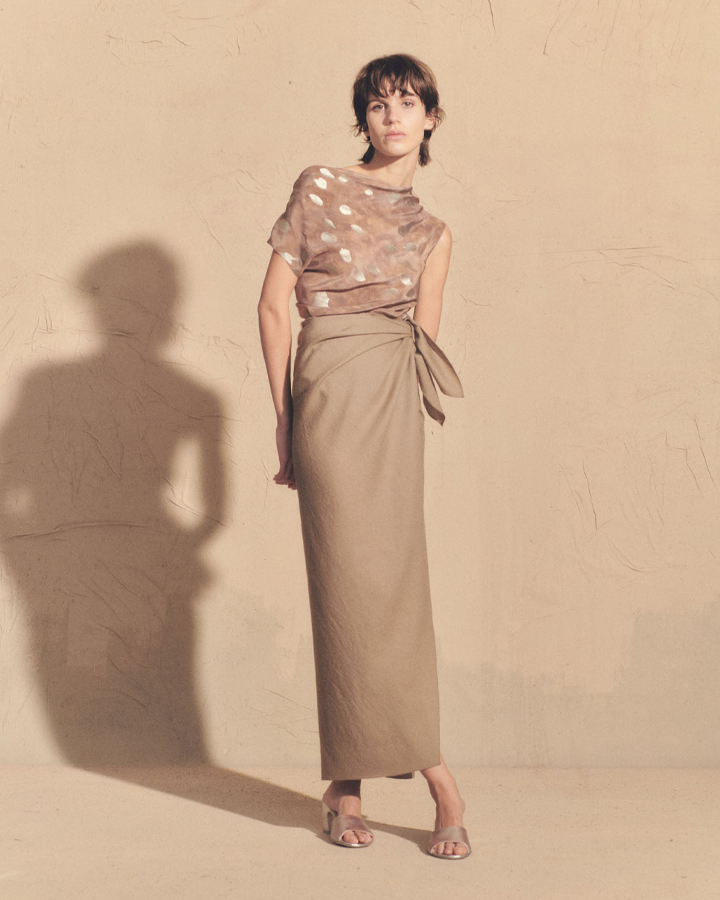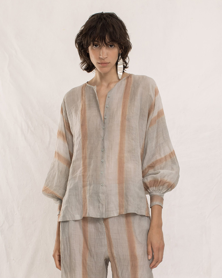 Cortana 水彩印花苧麻泡袖上衣