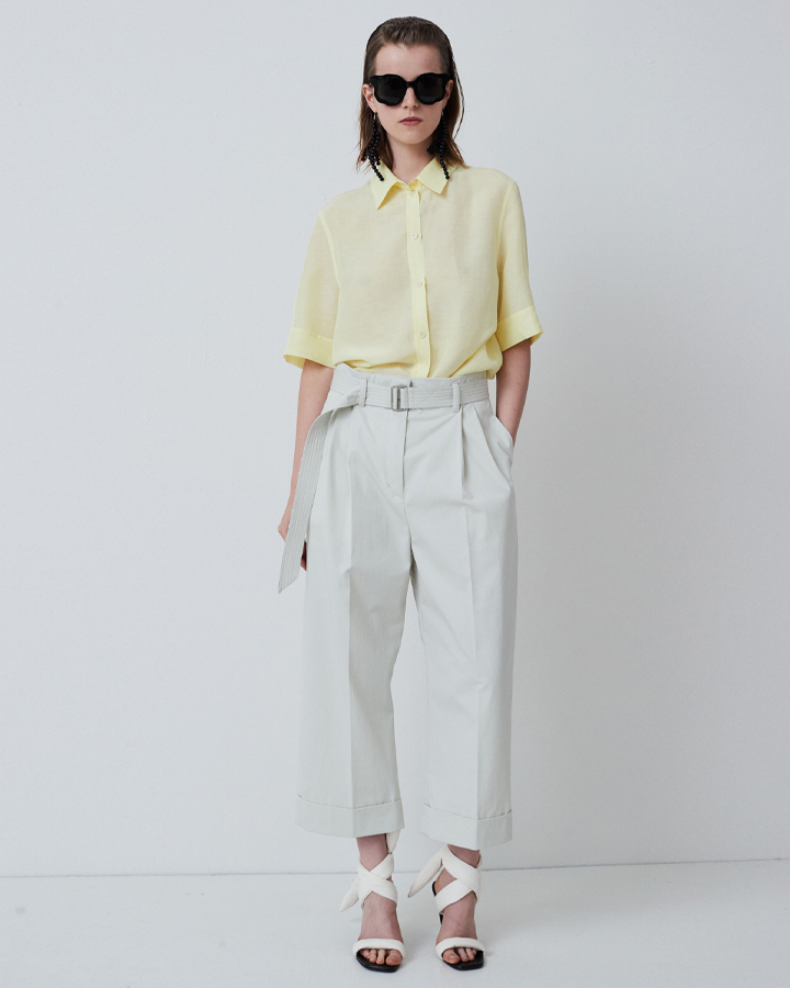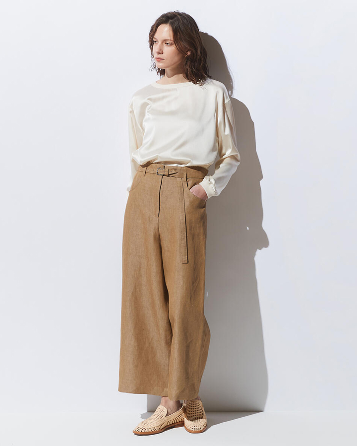Des Pres 亞麻腰帶微喇8分褲