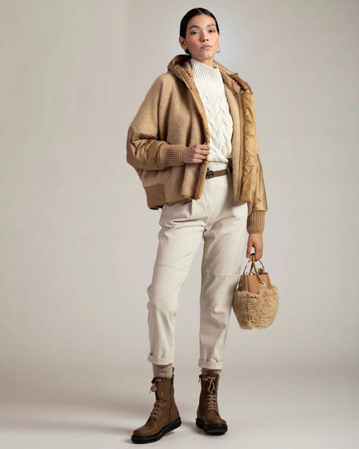 GentryPortofino 羊毛拼接短版棉襖外套