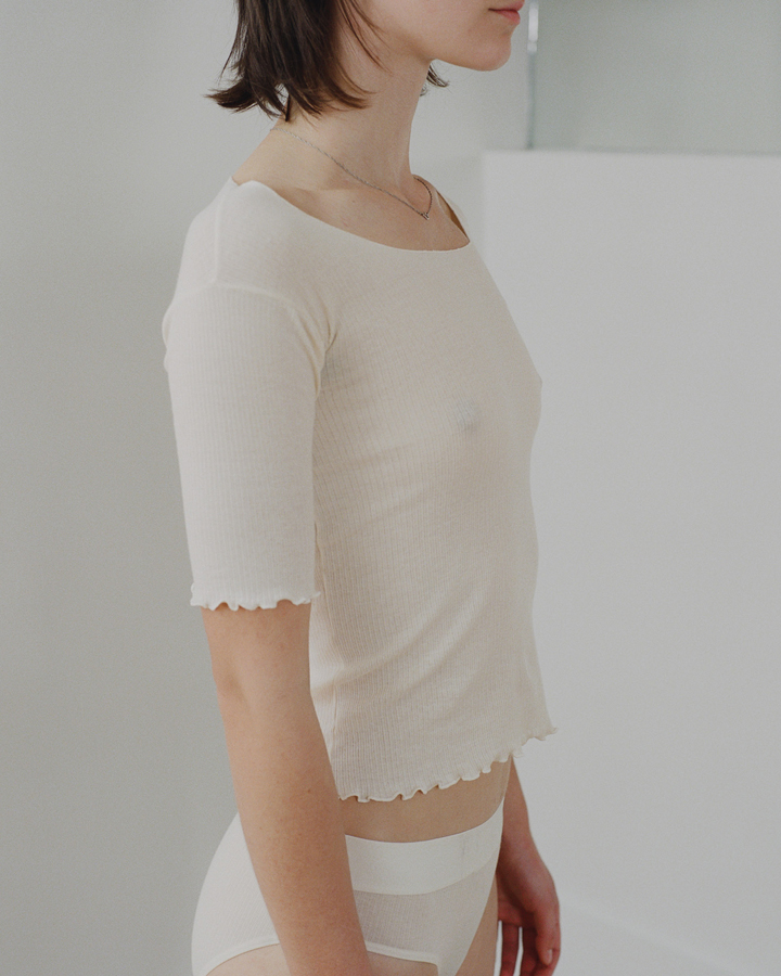 Baserange 船領羅紋純棉五分袖T|白色