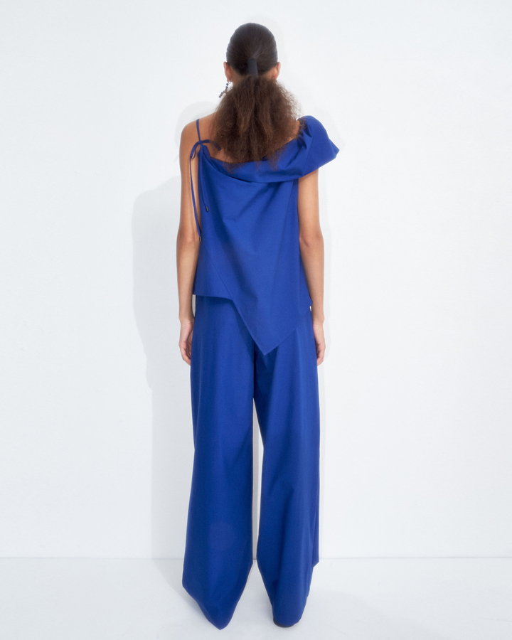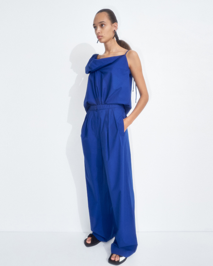 寬鬆直筒及褲襠前襟打褶的小細節,讓這條直筒褲不論搭配簡單白T-shirt,或是稍正式的衣服都很出色。
