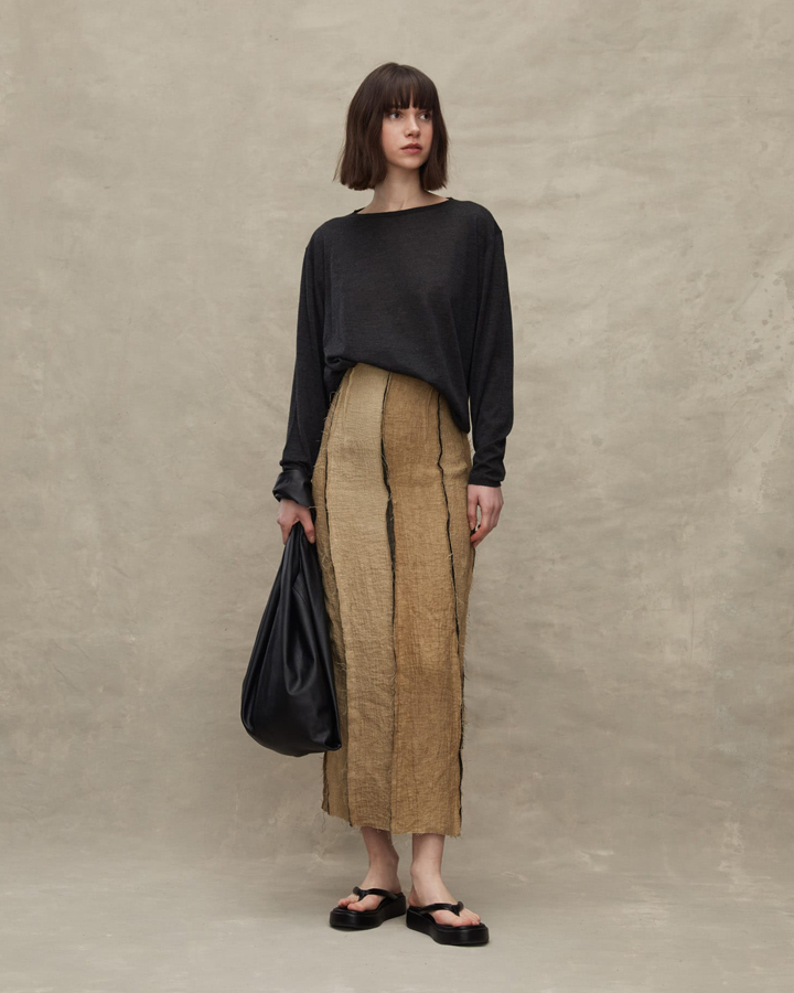 Cortana 亞麻棉拼接合身半裙