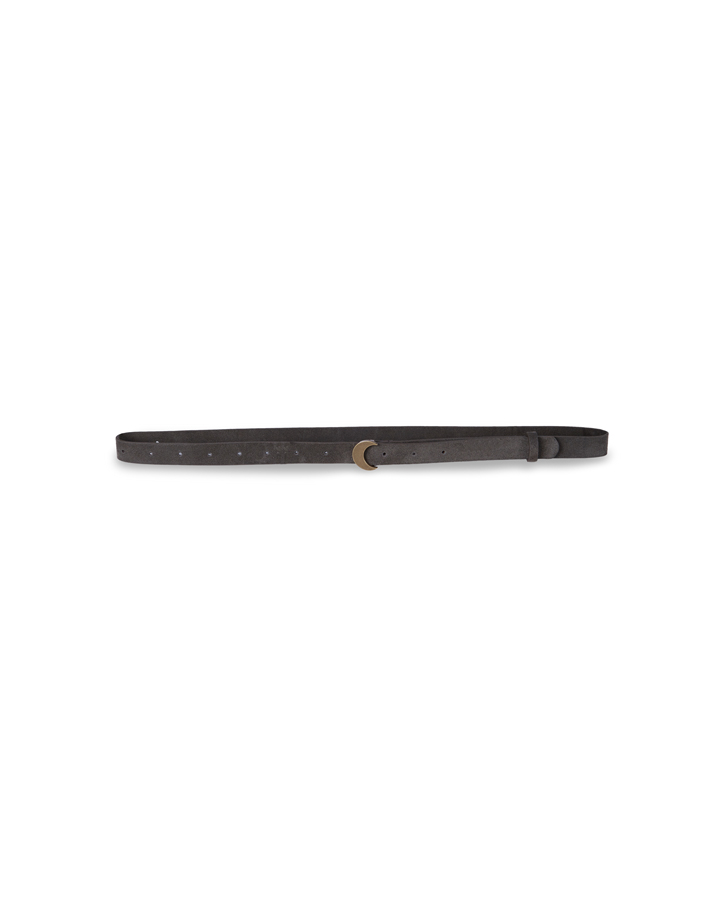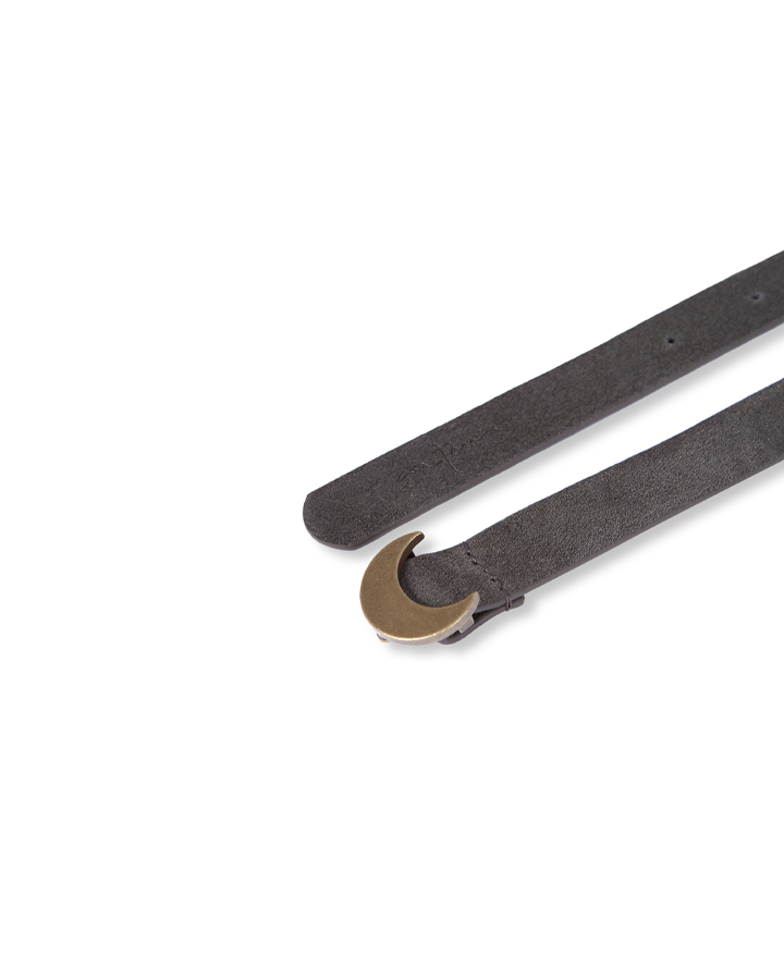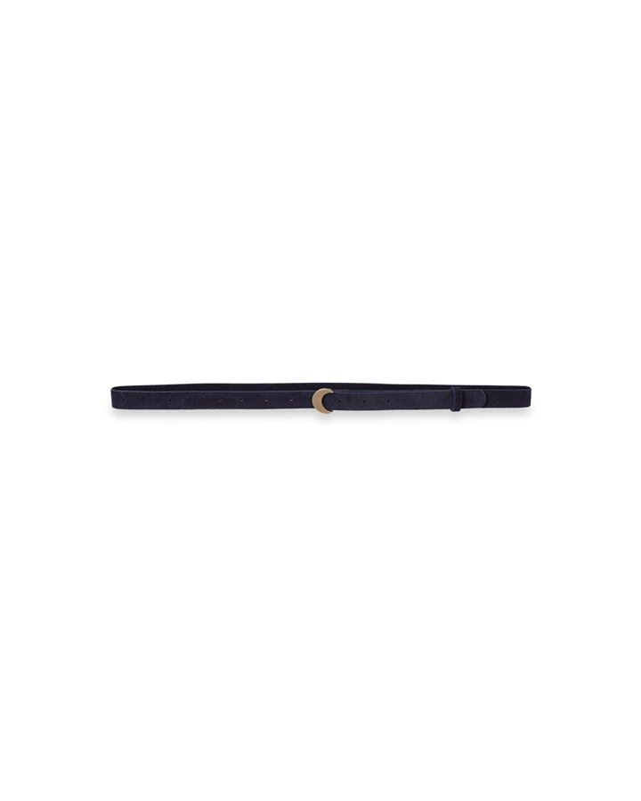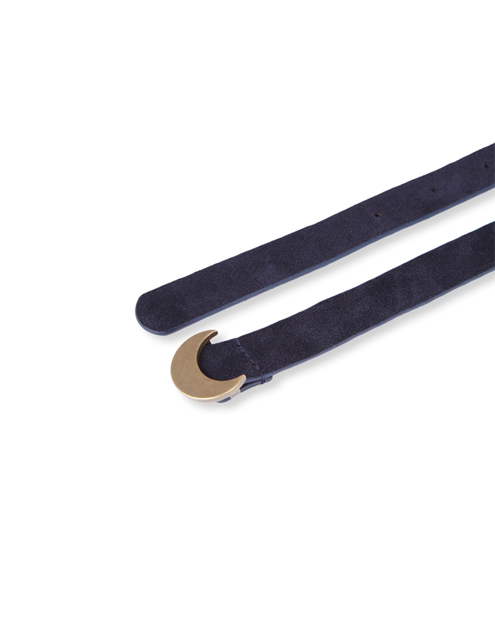 Luna 絨面麂皮腰帶。皮扣的形狀讓人想起 「Cortana」中的 C,靈感來自新月。這條腰帶是經典的 Cortana 設計,有四種顏色可供選擇。