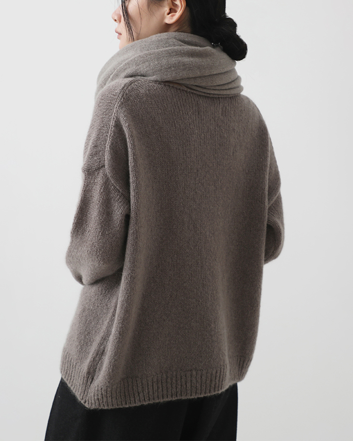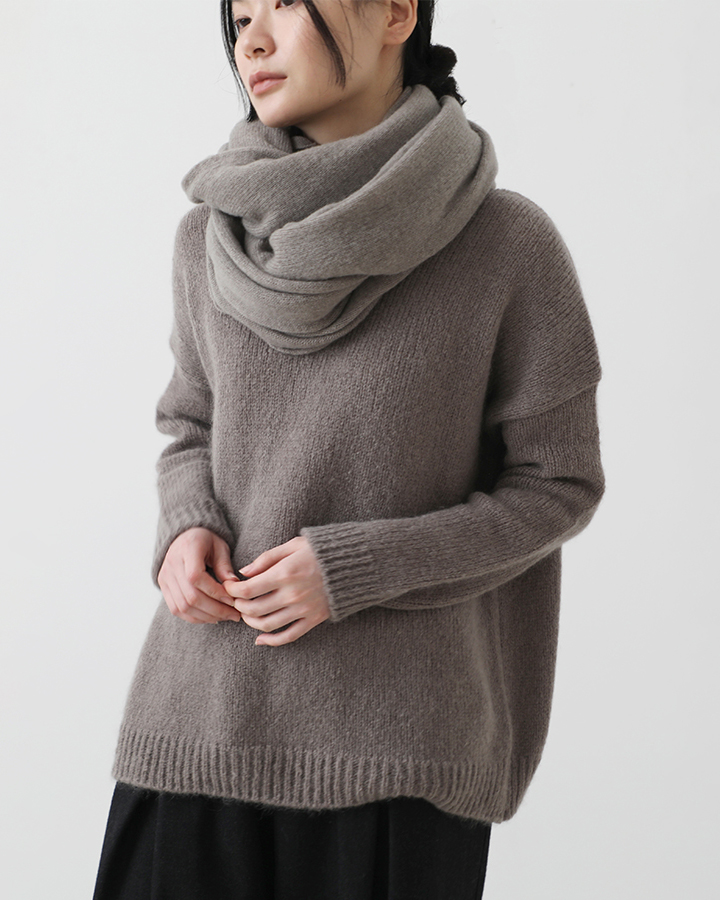 柔軟輕盈的針織披肩,採用與經典羊絨系列相同的織法。雖然圍起來輕盈舒適,但當它掛在脖子上時,你就能感受到溫暖。也可以作為休憩毯或罩衫使用。
