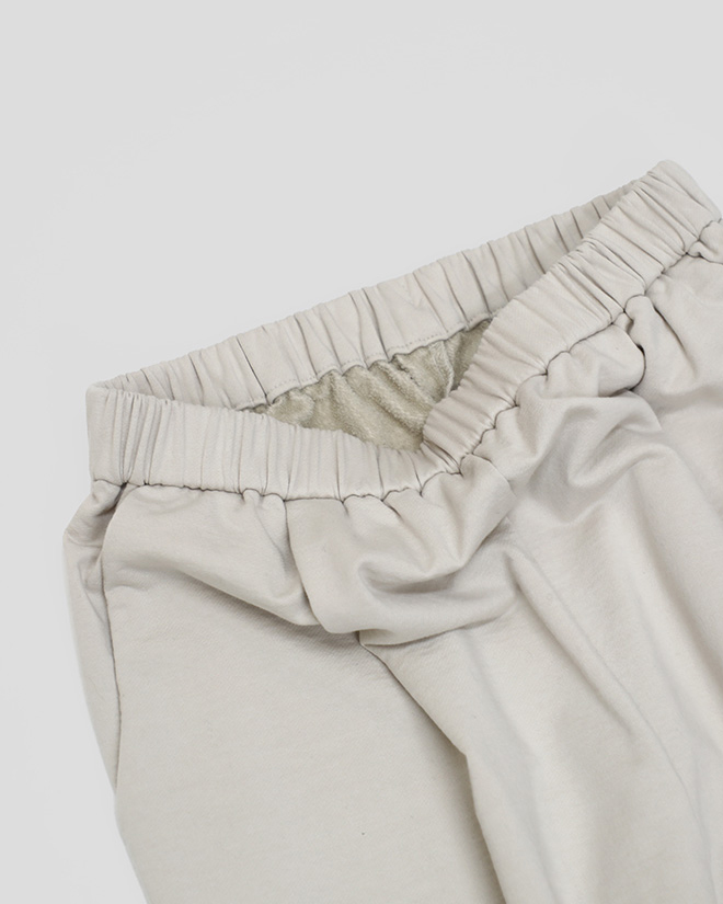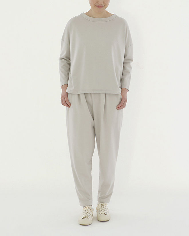抓絨面料,正面為棉,内面為羊毛。内裡較一般薄,表面的棉質地柔軟。寬鬆的尺寸不會凸顯身體線條,穿著舒適,但又給人一種休閒的感覺。