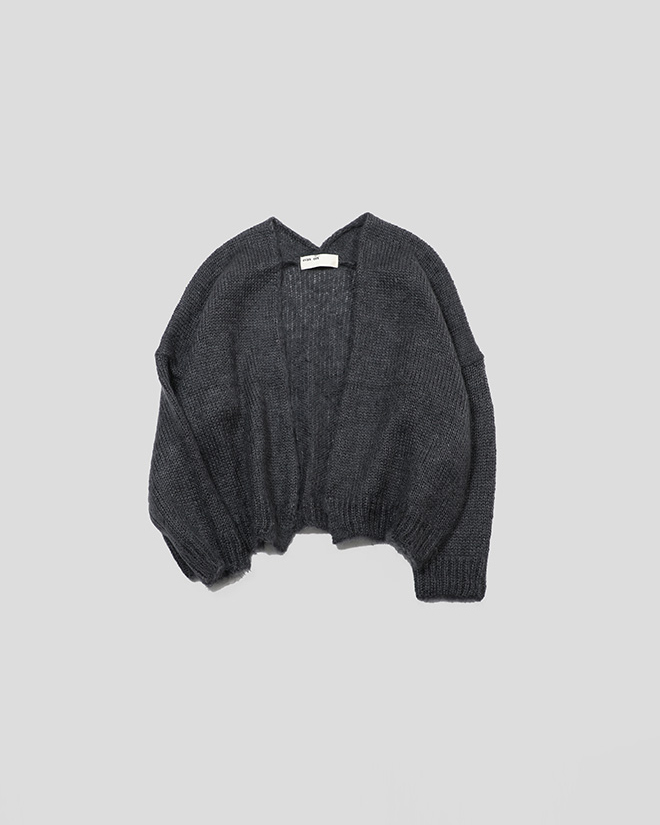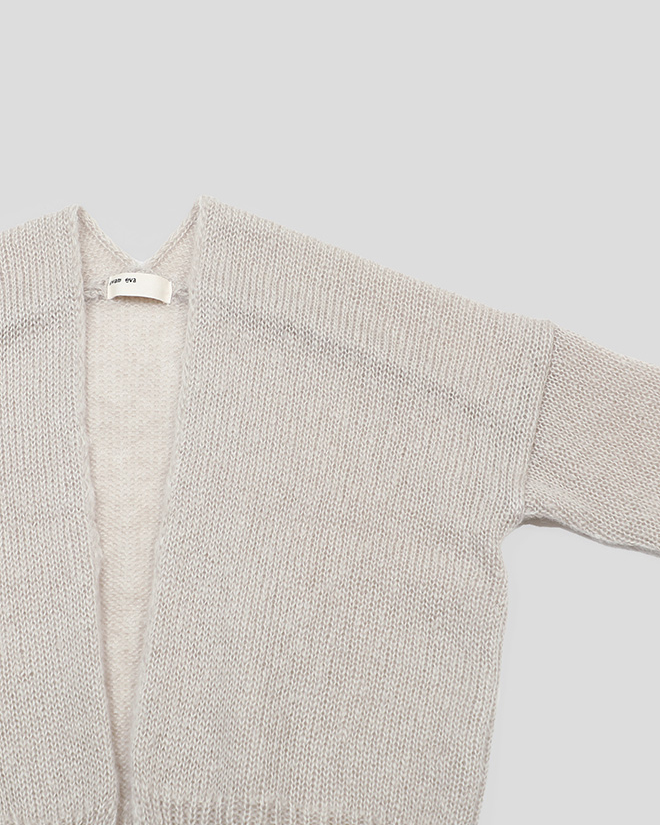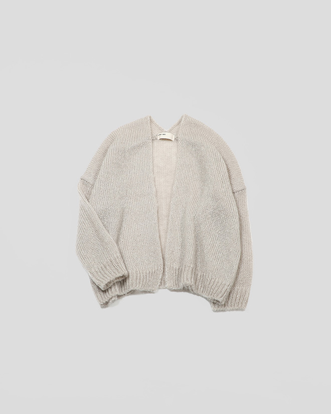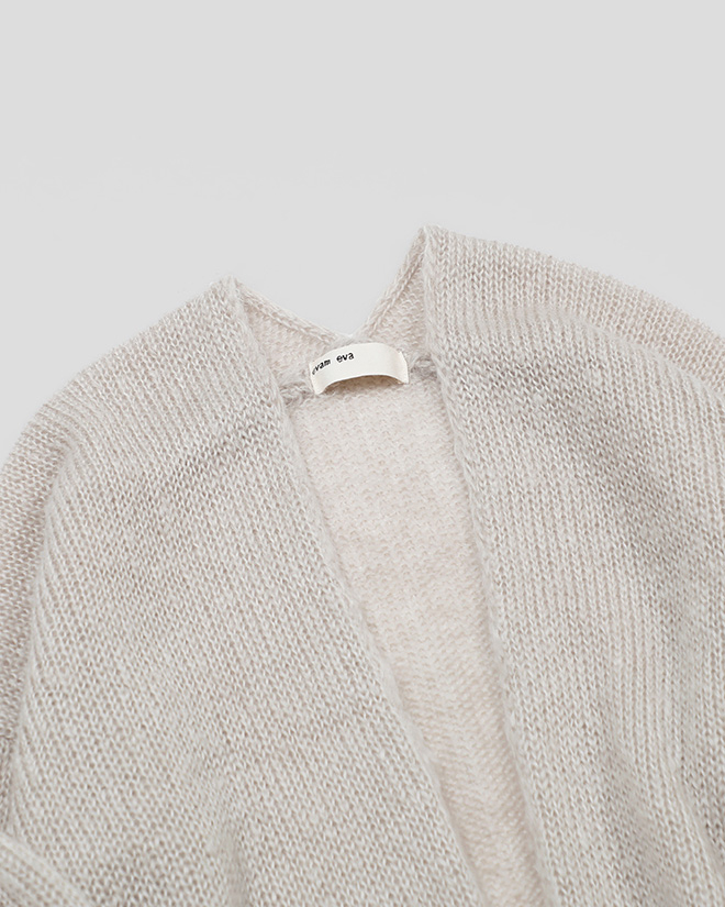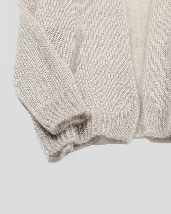 採用馬海毛紗粗織而成,其特點是具有絲綢般的光澤和柔軟性,蓬鬆的絨毛和優雅的光澤為簡單的開襟罩衫增添了魅力。