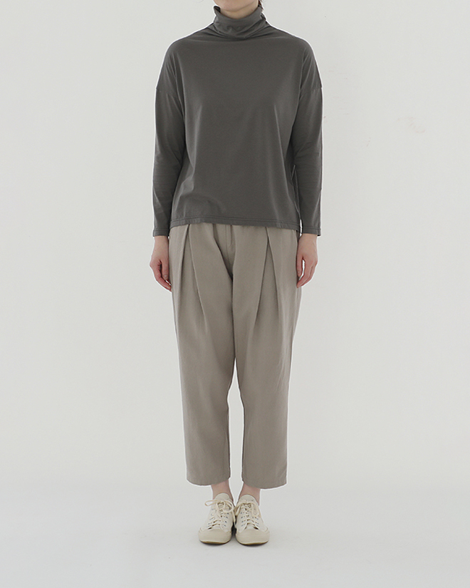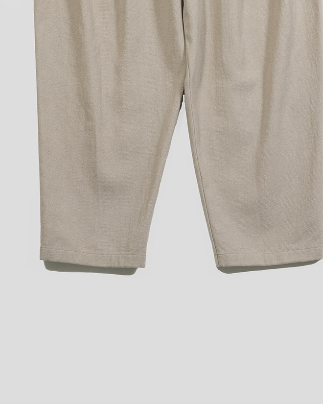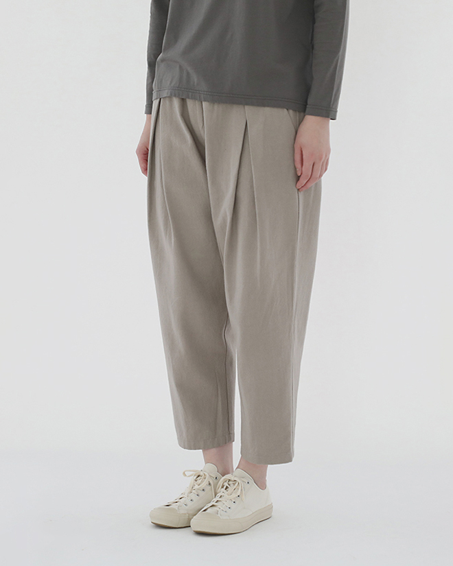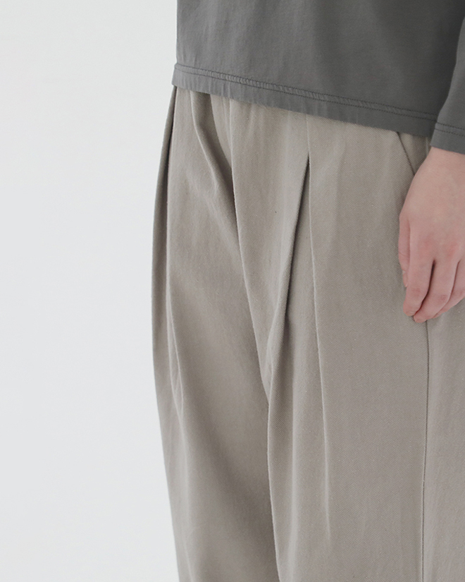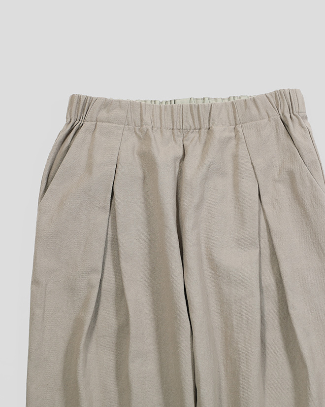 一種結合了棉的耐用性和絲綢的柔韌性的面料。它具有堅固的厚度和柔軟的質地,每次穿著時都能貼合您的身體。舒適的寬鬆度,鬆緊腰身。兩側均有打褶裝飾。