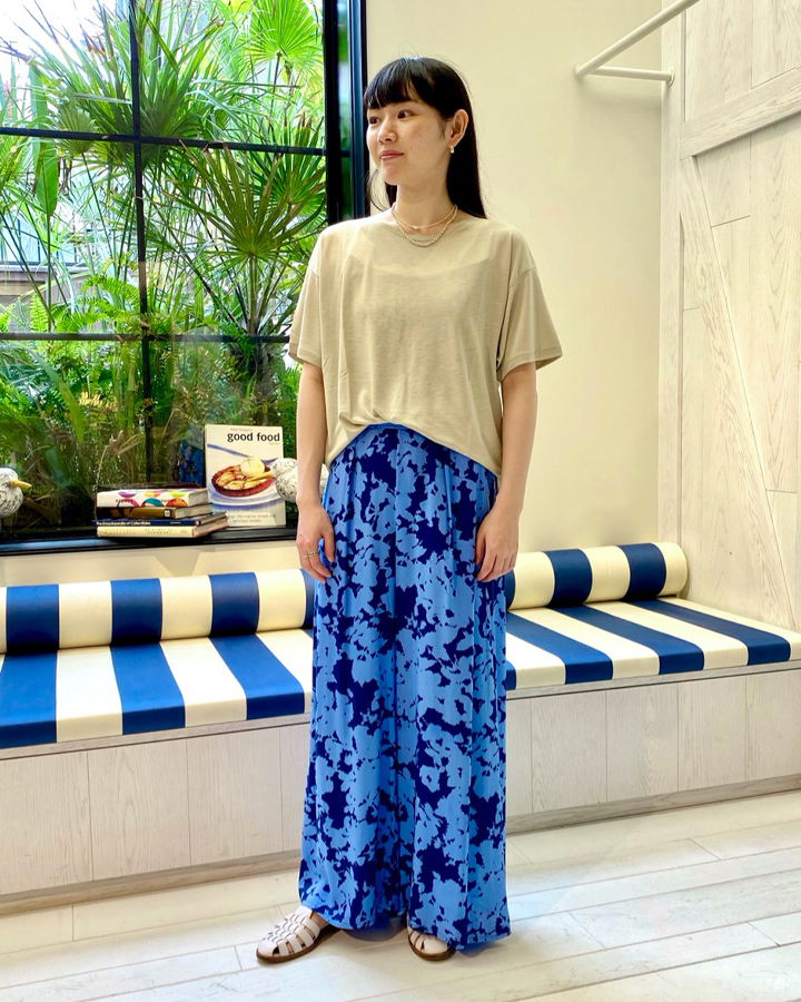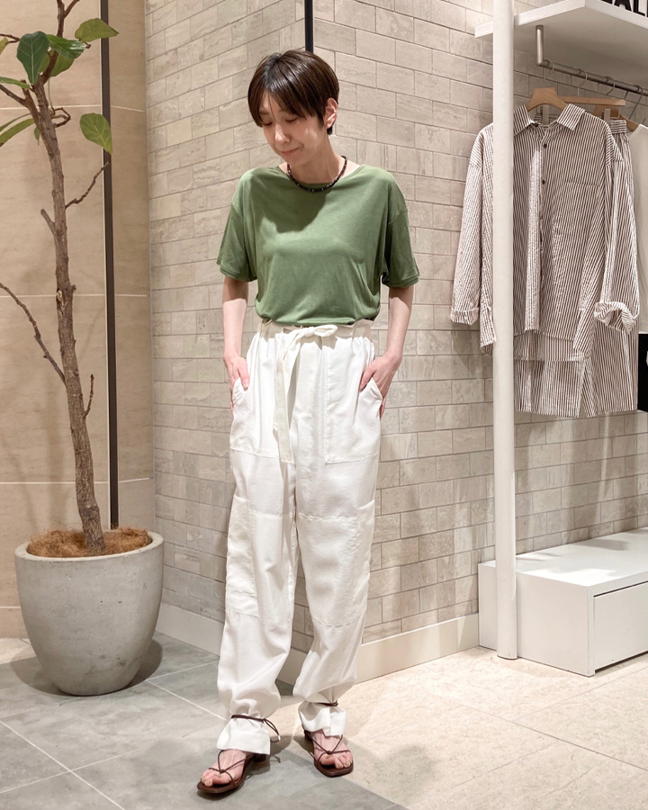 竹纖維製成的縲縈帶有天然的絲光感,接觸肌膚時則帶有冰涼觸感;寬鬆愜意的版性刻意塑造出放鬆自然的態度,不論如何搭配、在什麼季節搭配都是絕佳單品。
